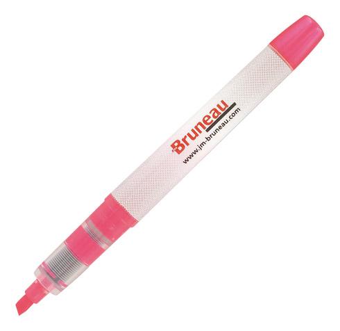 - En forme de stylo, le surligneur signé Bruneau est pratique pour marquer un passage important, souligner, écrire en toute aisance. Grâce à son encre liquide de couleurs vives, ce modèle s’utilise sur tout type de papier. Si le capuchon protège sa pointe, le système de régulation d’encre assure un débit précis lors de l’écriture. La pointe biseautée, quant à elle, permet une largeur de trait variant de 1 à 3,5 mm. Ce produit est disponible en 5 couleurs d’encre différents au choix : bleu, vert, rose, jaune et orange.