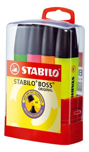 - À la recherche d’une fourniture pour mettre en valeur une partie de vos documents ? Pourquoi ne pas choisir le surligneur Boss de Stabilo ? Ce produit vous permet de marquer vos textes sans les masquer. Par sa grande résistance à la lumière, il reste longtemps visible sur tous types de papier sans se détériorer. Réalisée à base d’eau, son encre à pigmentation ne présente aucun danger pour votre santé. Au cas où vous oubliez de remettre le capuchon, inutile de vous inquiéter, il résiste à l’air libre pendant 4 heures. Ce modèle dispose d’une pointe biseautée permettant un trait de 2 à 5 mm. Pratique pour varier la grosseur des lettres ou l’épaisseur des lignes ! Le produit est proposé en pack de 4 pièces. Pour plus de praticité, le produit est livré avec sa boîte de rangement. Article disponible en 4 couleurs d'encre assorties (jaune, rose, vert et orange). Idéal pour repérer les textes selon leur importance.