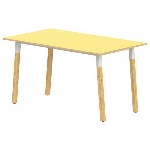 Table 4 pieds inclinés métal/bois 200 x 80 cm stratifié ABS Chants coloris : Hêtre Chants matériau : ABS Environnement : Intérieur Finitions : Stratifié Forme : Rectangle Fréquence d'utilisation : Régulière Garantie client : 10 ans Hauteur : 76 cm Livré monté : non Longueurs : 200 cm Norme : ISO 9001 Piétement coloris : Hêtre Plateau coloris : Jaune Plateau matériau : Aggloméré Poids du produit : 31.340 kg Profondeur : 80 cm Taille mobilier : T6 Type de piétement : 4 pieds Usage : Collectivité Table rectangulaire T1 à T6. 4 pieds inclinés métal et bois, cadre soudé Structure : traverses de renforts entre piètements. Piètement en hêtre massif de section 45x45 mm vernis polyuréthane bicouche. Soudures renforcées avec apport de métal. Vérins réglables non tachants et antibruit. Plateau : stratifié, contrebalancé. Chants ABS 2 mm. Panneau de particules d’une densité de 690 kg/m3 classé E1. Classement non feu M3. Conforme aux normes NFD 60050, NFD 62050 et NFD 62070. Livré démonté Table 4 pieds inclinés métal/bois 200 x 80 cm stratifié ABS, Longueur: 200 cm, Profondeur: 80 cm, Plateau matériau: Aggloméré, Piétement coloris: Hêtre, Plateau coloris: Jaune, Hauteur: 76 cm, Type de piétement: 4 pieds, Finition: Stratifié, Chants coloris: Hêtre, Livré monté: non, Chants matériau: ABS, Taille mobilier: T6, Fréquence d'utilisation: Régulière, Poids: 31.340 kg, Usage: Collectivité, Forme: Rectangle