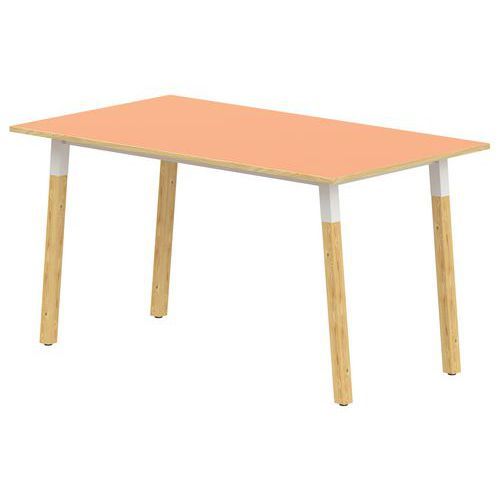 Table 4 pieds inclinés métal/bois 200 x 80 cm stratifié ABS Chants coloris : Hêtre Chants matériau : ABS Environnement : Intérieur Finitions : Stratifié Forme : Rectangle Fréquence d'utilisation : Régulière Garantie client : 10 ans Hauteur : 76 cm Livré monté : non Longueurs : 200 cm Norme : ISO 9001 Piétement coloris : Hêtre Plateau coloris : Orange Plateau matériau : Aggloméré Poids du produit : 31.340 kg Profondeur : 80 cm Taille mobilier : T6 Type de piétement : 4 pieds Usage : Collectivité Table rectangulaire T1 à T6. 4 pieds inclinés métal et bois, cadre soudé Structure : traverses de renforts entre piètements. Piètement en hêtre massif de section 45x45 mm vernis polyuréthane bicouche. Soudures renforcées avec apport de métal. Vérins réglables non tachants et antibruit. Plateau : stratifié, contrebalancé. Chants ABS 2 mm. Panneau de particules d’une densité de 690 kg/m3 classé E1. Classement non feu M3. Conforme aux normes NFD 60050, NFD 62050 et NFD 62070. Livré démonté Table 4 pieds inclinés métal/bois 200 x 80 cm stratifié ABS, Longueur: 200 cm, Profondeur: 80 cm, Plateau matériau: Aggloméré, Piétement coloris: Hêtre, Plateau coloris: Orange, Hauteur: 76 cm, Type de piétement: 4 pieds, Finition: Stratifié, Chants coloris: Hêtre, Livré monté: non, Chants matériau: ABS, Taille mobilier: T6, Fréquence d'utilisation: Régulière, Poids: 31.340 kg, Usage: Collectivité, Forme: Rectangle