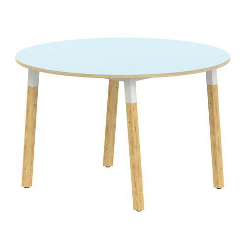Table 4 pieds inclinés métal/bois ronde Ø 120 cm stratifié ABS Chants coloris : Hêtre Chants matériau : ABS Environnement : Intérieur Finitions : Stratifié Forme : Rond Fréquence d'utilisation : Régulière Garantie client : 10 ans Hauteur : 76 cm Livré monté : non Longueurs : 120 cm Norme : ISO 9001 Piétement coloris : Hêtre Plateau coloris : Bleu Plateau matériau : Aggloméré Poids du produit : 28.930 kg Profondeur : 120 cm Taille mobilier : T6 Type de piétement : 4 pieds Usage : Collectivité Table ronde T1 à T6. 4 pieds inclinés métal et bois, cadre soudé Structure : traverses de renforts entre piètements. Piètement en hêtre massif de section 45x45 mm vernis polyuréthane bicouche. Soudures renforcées avec apport de métal. Vérins réglables non tachants et antibruit. Plateau : stratifié, contrebalancé. Chants ABS 2 mm. Panneau de particules d’une densité de 690 kg/m3 classé E1. Classement non feu M3. Conforme aux normes NFD 60050, NFD 62050 et NFD 62070. Livré démonté Table 4 pieds inclinés métal/bois ronde Ø 120 cm stratifié ABS, Longueur: 120 cm, Profondeur: 120 cm, Plateau matériau: Aggloméré, Piétement coloris: Hêtre, Plateau coloris: Bleu, Hauteur: 76 cm, Type de piétement: 4 pieds, Finition: Stratifié, Chants coloris: Hêtre, Livré monté: non, Chants matériau: ABS, Taille mobilier: T6, Fréquence d'utilisation: Régulière, Poids: 28.930 kg, Usage: Collectivité, Forme: Rond