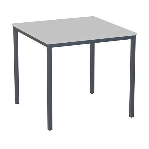 Descriptif du produit :Table à manger Versys Hauteur : 743 mm Longueurs : 800 mm Montage : À monter Piétement coloris : Anthracite Plateau coloris : Gris clair Plateau épaisseur : 18 mm Plateau matériau : Aggloméré Poids du produit : 22000 g Profondeur : 800 mm RAL : 7016 Table à manger Versys équipée d'un chant ABS de 2 mm. Peut être librement combinés entre eux en couleur. Traitement de sur ...