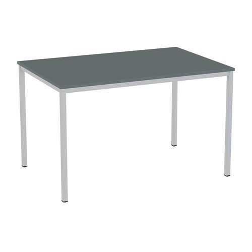 Descriptif du produit :Table à manger Versys Hauteur : 743 mm Longueurs : 1200 mm Montage : À monter Piétement coloris : Argent Plateau coloris : Gris foncé Plateau épaisseur : 18 mm Plateau matériau : Aggloméré Poids du produit : 27620 g Profondeur : 800 mm RAL : 9006 Table à manger Versys équipée d'un chant ABS de 2 mm. Peut être librement combinés entre eux en couleur. Traitement de surfa ...