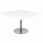 Plateau épaisseur 25 mm en mélaminé.Piètement tube métal Ø 80 cm sur corolle Ø 60 cm revêtu époxy.Fixation par platine métal sous le plateau.