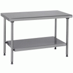 Descriptif du produit :Plan de travail en acier inoxydable 18/10, épaisseur 12/10e, doublé par panneau stratifié hydrofuge et renforcé par un cadre en profilé.Bandeau hauteur 4 cm à bords droits.Piètements Ø 3,8 cm équipés de vérins réglables.Montage très rapide par emboîtement.
