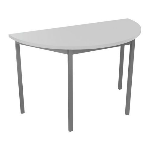 Table de réunion demilune TREFF Approche écoresponsable : oui Chant matériau : ABS antichoc Écolabel NF Environnement : oui Ergonomique : oui Finition : Mélaminée Forme : Demicercle Garantie client : 10 ans Hauteur : 74 cm Largeur : 60 cm Licence PEFC : 10311004 Longueur hors tout : 120 cm Montage : À monter NFOEC (Confortique) : oui Piétement coloris : Gris clair Piétement matériaux : Acier Plateau coloris : Gris clair Plateau épaisseur : 25 mm Plateau matériau : Aggloméré Sélection télétravail : non Type de piétement : 4 pieds Table de réunion demilune polyvalente avec plateau mélaminé, épaisseur 25 mm. Chants ABS antichoc 2 mm. Cadre métallique porteur de section 50 x 20 mm, rêvetement époxy, finition identique aux pieds. Piétement métal de section 30 x 30 mm finition époxy laqué Vérins de réglages de course 10 mm pour corriger les défauts du sol et proposer un alignement parfait entre les tables. Table de réunion demilune TREFF, Type de piétement: 4 pieds, Hauteur: 74 cm, Largeur: 60 cm, Forme: Demicercle, Plateau matériau: Aggloméré, Plateau coloris: Gris clair, Longueur hors tout: 120 cm, Piétement coloris: Gris clair, Chant matériau: ABS antichoc, Montage: À monter, Sélection télétravail: non, Piétement matériau: Acier, Approche écoresponsable: oui, Plateau épaisseur: 25 mm, Licence PEFC: 10311004, Écolabel NF Environnement: oui, Finition: Mélaminée, NFOEC (Confortique): oui
