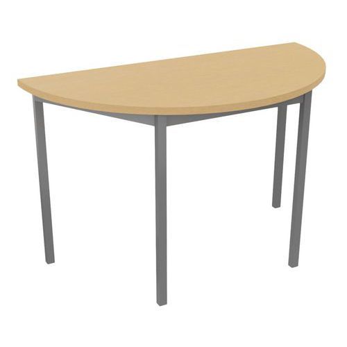 Table de réunion demilune TREFF Approche écoresponsable : oui Chant matériau : ABS antichoc Écolabel NF Environnement : oui Ergonomique : oui Finition : Mélaminée Forme : Demicercle Garantie client : 10 ans Hauteur : 74 cm Largeur : 60 cm Licence PEFC : 10311004 Longueur hors tout : 120 cm Montage : À monter NFOEC (Confortique) : oui Piétement coloris : Gris clair Piétement matériaux : Acier Plateau coloris : Hêtre Plateau épaisseur : 25 mm Plateau matériau : Aggloméré Sélection télétravail : non Type de piétement : 4 pieds Table de réunion demilune polyvalente avec plateau mélaminé, épaisseur 25 mm. Chants ABS antichoc 2 mm. Cadre métallique porteur de section 50 x 20 mm, rêvetement époxy, finition identique aux pieds. Piétement métal de section 30 x 30 mm finition époxy laqué Vérins de réglages de course 10 mm pour corriger les défauts du sol et proposer un alignement parfait entre les tables. Table de réunion demilune TREFF, Type de piétement: 4 pieds, Hauteur: 74 cm, Largeur: 60 cm, Forme: Demicercle, Plateau matériau: Aggloméré, Plateau coloris: Hêtre, Longueur hors tout: 120 cm, Piétement coloris: Gris clair, Chant matériau: ABS antichoc, Montage: À monter, Sélection télétravail: non, Piétement matériau: Acier, Approche écoresponsable: oui, Plateau épaisseur: 25 mm, Licence PEFC: 10311004, Écolabel NF Environnement: oui, Finition: Mélaminée, NFOEC (Confortique): oui