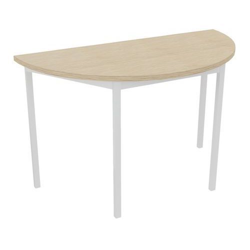 Table de réunion demilune TREFF Approche écoresponsable : oui Chant matériau : ABS antichoc Écolabel NF Environnement : oui Ergonomique : oui Finition : Mélaminée Forme : Demicercle Garantie client : 10 ans Hauteur : 74 cm Largeur : 60 cm Licence PEFC : 10311004 Longueur hors tout : 120 cm Montage : À monter NFOEC (Confortique) : oui Piétement coloris : Blanc Piétement matériaux : Acier Plateau coloris : Chêne Plateau épaisseur : 25 mm Plateau matériau : Aggloméré Sélection télétravail : non Type de piétement : 4 pieds Table de réunion demilune polyvalente avec plateau mélaminé, épaisseur 25 mm. Chants ABS antichoc 2 mm. Cadre métallique porteur de section 50 x 20 mm, rêvetement époxy, finition identique aux pieds. Piétement métal de section 30 x 30 mm finition époxy laqué Vérins de réglages de course 10 mm pour corriger les défauts du sol et proposer un alignement parfait entre les tables. Table de réunion demilune TREFF, Type de piétement: 4 pieds, Hauteur: 74 cm, Largeur: 60 cm, Forme: Demicercle, Plateau matériau: Aggloméré, Plateau coloris: Chêne, Longueur hors tout: 120 cm, Piétement coloris: Blanc, Chant matériau: ABS antichoc, Montage: À monter, Sélection télétravail: non, Piétement matériau: Acier, Approche écoresponsable: oui, Plateau épaisseur: 25 mm, Licence PEFC: 10311004, Écolabel NF Environnement: oui, Finition: Mélaminée, NFOEC (Confortique): oui