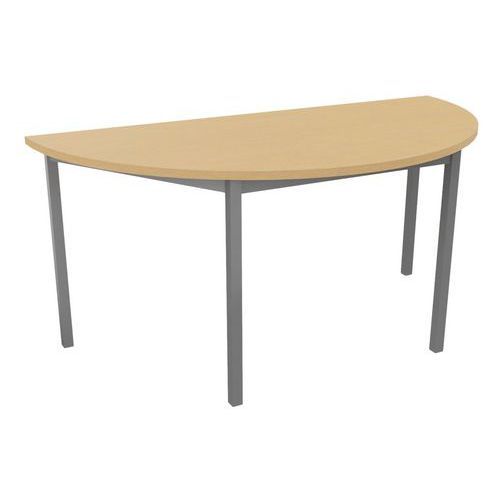 Table de réunion demilune TREFF Approche écoresponsable : oui Chant matériau : ABS antichoc Écolabel NF Environnement : oui Ergonomique : oui Finition : Mélaminée Forme : Demicercle Garantie client : 10 ans Hauteur : 74 cm Largeur : 80 cm Licence PEFC : 10311004 Longueur hors tout : 160 cm Montage : À monter NFOEC (Confortique) : oui Piétement coloris : Gris clair Piétement matériaux : Acier Plateau coloris : Hêtre Plateau épaisseur : 25 mm Plateau matériau : Aggloméré Sélection télétravail : non Type de piétement : 4 pieds Table de réunion demilune polyvalente avec plateau mélaminé, épaisseur 25 mm. Chants ABS antichoc 2 mm. Cadre métallique porteur de section 50 x 20 mm, rêvetement époxy, finition identique aux pieds. Piétement métal de section 30 x 30 mm finition époxy laqué Vérins de réglages de course 10 mm pour corriger les défauts du sol et proposer un alignement parfait entre les tables. Table de réunion demilune TREFF, Type de piétement: 4 pieds, Hauteur: 74 cm, Largeur: 80 cm, Forme: Demicercle, Plateau matériau: Aggloméré, Plateau coloris: Hêtre, Longueur hors tout: 160 cm, Piétement coloris: Gris clair, Chant matériau: ABS antichoc, Montage: À monter, Sélection télétravail: non, Piétement matériau: Acier, Approche écoresponsable: oui, Plateau épaisseur: 25 mm, Licence PEFC: 10311004, Écolabel NF Environnement: oui, Finition: Mélaminée, NFOEC (Confortique): oui