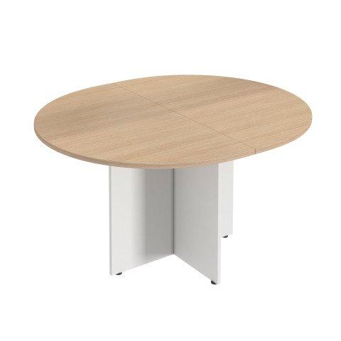 TABLE DE RÉUNION OVALE EXTENSIBLE EXCELLENS BOIS L140 X P 120 CM PLATEAU CHÊNE CLAIR PIEDS CROIX BLANC
