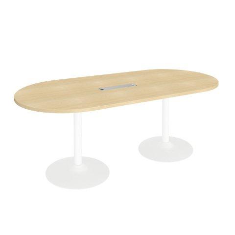 TABLE DE RÉUNION OVALE L 210 CM HÊTRE PIÈTEMENT COLONNE BLANC EXCELLENS