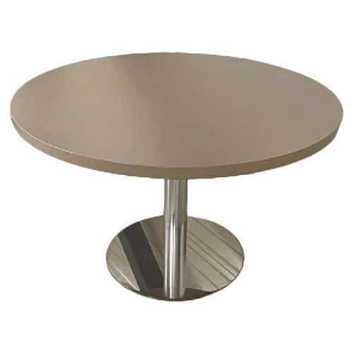 Table de réunion reconditionnée 120x120x74 cm Approche écoresponsable : oui Forme : Rond Garantie client : 3 ans Hauteur : 740 mm Largeur : 1200 mm Piétement matériau : Acier Plateau coloris : Taupe Plateau matériau : Mélaminé Produit reconditionné : oui Profondeur hors tout : 1200 mm Type de piétement : Central Table de réunion d'occasion ronde, le choix idéal pour des réunions professionnelles ou conviviales. Produit d’occasion en excellent état reconditionné à neuf par nos experts. Plateau en finition revêtement mélaminé qui lui confère une esthétique chaleureuse et une résistance optimale aux rayures et aux taches. Chants ABS antichocs permettant une protection supplémentaire contre les chocs et les impacts. 1 pied central en métal finition époxy garantissant stabilité et robustesse. Table de réunion reconditionnée 120x120x74 cm, Type de piétement: Central, Hauteur: 740 mm, Largeur: 1200 mm, Profondeur hors tout: 1200 mm, Forme: Rond, Plateau matériau: Mélaminé, Plateau coloris: Taupe, Piétement matériau: Acier, Approche écoresponsable: oui, Produit reconditionné: oui