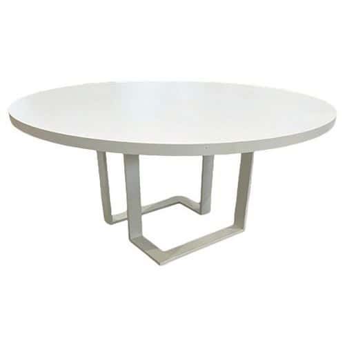 Table de réunion reconditionnée 150x150x71 cm Approche écoresponsable : oui Forme : Rond Garantie client : 3 ans Hauteur : 710 mm Largeur : 1500 mm Piétement matériau : Acier Plateau coloris : Blanc Plateau matériau : Mélaminé Produit recondionné par Manutan : oui Profondeur hors tout : 1500 mm Type de piétement : En L Table de réunion d'occasion ronde, le choix idéal pour des réunions professionnelles ou conviviales. Produit d’occasion en excellent état reconditionné à neuf par nos experts. Plateau en finition revêtement mélaminé qui lui confère une esthétique chaleureuse et une résistance optimale aux rayures et aux taches. Chants ABS antichocs permettant une protection supplémentaire contre les chocs et les impacts. Piétement en métal finition époxy garantissant stabilité et robustesse. Table de réunion reconditionnée 150x150x71 cm, Type de piétement: En L, Hauteur: 710 mm, Largeur: 1500 mm, Profondeur hors tout: 1500 mm, Forme: Rond, Plateau matériau: Mélaminé, Plateau coloris: Blanc, Piétement matériau: Acier, Approche écoresponsable: oui, Produit d'occasion: oui