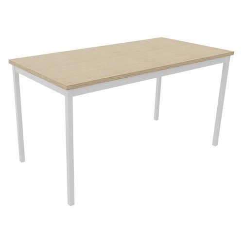 Table de réunion droite TREFF Approche écoresponsable : oui Chant matériau : ABS antichoc Écolabel NF Environnement : oui Ergonomique : oui Finition : Mélaminée Forme : Rectangle Garantie client : 10 ans Hauteur : 74 cm Largeur : 70 cm Licence PEFC : 10311004 Longueur hors tout : 140 cm Montage : À monter NFOEC (Confortique) : oui Piétement coloris : Blanc Piétement matériaux : Acier Plateau coloris : Chêne Plateau épaisseur : 25 mm Plateau matériau : Aggloméré Sélection télétravail : non Type de piétement : 4 pieds Table de réunion droite polyvalente avec plateau mélaminé, épaisseur 25 mm. Chants ABS antichoc 2 mm. Cadre métallique porteur de section 50 x 20 mm, rêvetement époxy, finition identique aux pieds. Piétement métal de section 30 x 30 mm finition époxy laqué Vérins de réglages de course 10 mm pour corriger les défauts du sol et proposer un alignement parfait entre les tables. Table de réunion droite TREFF, Type de piétement: 4 pieds, Hauteur: 74 cm, Largeur: 70 cm, Forme: Rectangle, Plateau matériau: Aggloméré, Plateau coloris: Chêne, Longueur hors tout: 140 cm, Piétement coloris: Blanc, Chant matériau: ABS antichoc, Montage: À monter, Sélection télétravail: non, Piétement matériau: Acier, Approche écoresponsable: oui, Plateau épaisseur: 25 mm, Licence PEFC: 10311004, Écolabel NF Environnement: oui, Finition: Mélaminée, NFOEC (Confortique): oui