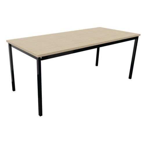 Table de réunion droite TREFF Approche écoresponsable : oui Chant matériau : ABS antichoc Écolabel NF Environnement : oui Ergonomique : oui Finition : Mélaminée Forme : Rectangle Garantie client : 10 ans Hauteur : 74 cm Largeur : 80 cm Licence PEFC : 10311004 Longueur hors tout : 180 cm Montage : À monter NFOEC (Confortique) : oui Piétement coloris : Noir Piétement matériaux : Acier Plateau coloris : Chêne Plateau épaisseur : 25 mm Plateau matériau : Aggloméré Sélection télétravail : non Type de piétement : 4 pieds Table de réunion droite polyvalente avec plateau mélaminé, épaisseur 25 mm. Chants ABS antichoc 2 mm. Cadre métallique porteur de section 50 x 20 mm, rêvetement époxy, finition identique aux pieds. Piétement métal de section 30 x 30 mm finition époxy laqué Vérins de réglages de course 10 mm pour corriger les défauts du sol et proposer un alignement parfait entre les tables. Table de réunion droite TREFF, Type de piétement: 4 pieds, Hauteur: 74 cm, Largeur: 80 cm, Forme: Rectangle, Plateau matériau: Aggloméré, Plateau coloris: Chêne, Longueur hors tout: 180 cm, Piétement coloris: Noir, Chant matériau: ABS antichoc, Montage: À monter, Sélection télétravail: non, Piétement matériau: Acier, Approche écoresponsable: oui, Plateau épaisseur: 25 mm, Licence PEFC: 10311004, Écolabel NF Environnement: oui, Finition: Mélaminée, NFOEC (Confortique): oui