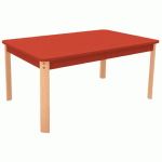 Pieds en hêtre massif vernis, attachés par 2 vis M10 à des équerres en acier zingué, fixées sur le plateau par 8 vis.Angles arrondis sans danger pour les enfants.
