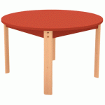 Pieds en hêtre massif vernis, attachés par 2 vis M10 à des équerres en acier zingué, fixées sur le plateau par 8 vis.Angles arrondis sans danger pour les enfants.