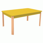 Pieds en hêtre massif vernis, attachés par 2 vis M10 à des équerres en acier zingué, fixées sur le plateau par 8 vis.Angles arrondis sans danger pour les enfants.