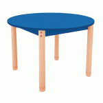 Pieds en hêtre massif vernis, attachés par 2 vis M10 à des équerres en acier zingué, fixées sur le plateau par 8 vis.Angles arrondis sans danger pour les enfants.