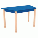 Pieds en hêtre massif vernis, attachés par 2 vis M10 à des équerres en acier zingué, fixées sur le plateau par 8 vis.Angles arrondis sans danger pour les enfants.
