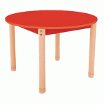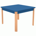 Pieds en hêtre massif vernis, attachés par 2 vis M10 à des équerres en acier zingué, fixées sur le plateau par 8 vis.Angles arrondis sans danger pour les enfants.