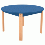Pieds en hêtre massif vernis, attachés par 2 vis M10 à des équerres en acier zingué, fixées sur le plateau par 8 vis.Angles arrondis sans danger pour les enfants.