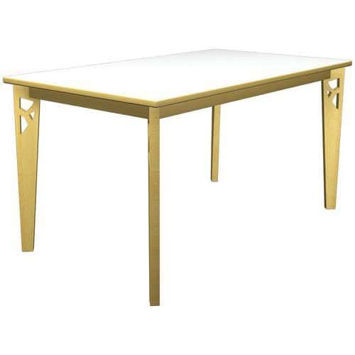Table Iriss rectangulaire stratifié 4 pieds hêtre naturel Approche écoresponsable : oui Chants coloris : Hêtre Chants matériau : PVC Emballage recyclable : Oui 100 % Emballage recyclé : 100 % Environnement : Milieu restauration Forme : Rectangle Fréquence d'utilisation : Régulière Garantie client : 3 ans Hauteur : 76 cm Licence PEFC : 1031885 Livré monté : non Longueurs : 140 cm Montage : À monter Piétement coloris : Hêtre Piétement matériaux : Hêtre Plateau coloris : Gris clair Plateau matériau : Stratifié Poids du produit : 30 kg Produit recyclable : Oui 100 % Produit recyclé : 55 % Profondeur : 80 cm Type de piétement : 4 pieds Usage : Collectivité Table Iriss 4 pieds avec plateau stratifié épaisseur 25 mm, chant PVC 2 mm. Piètement hêtre massif, verni naturel, épaisseur 27 mm. Assemblage équerre métallique. Verins plastique. Table Iriss rectangulaire stratifié, Longueur: 140 cm, Profondeur: 80 cm, Plateau matériau: Stratifié, Piétement coloris: Hêtre, Plateau coloris: Gris clair, Hauteur: 76 cm, Type de piétement: 4 pieds, Chants coloris: Hêtre, Livré monté: non, Chants matériau: PVC, Montage: À monter, Fréquence d'utilisation: Régulière, Emballage recyclable: Oui 100 %, Emballage recyclé: 100 %, Produit recyclable: Oui 100 %, Produit recyclé: 55 %, Piétement matériau: Hêtre, Approche écoresponsable: oui, Poids: 30 kg, Usage: Collectivité, Forme: Rectangle, Licence PEFC: 1031885