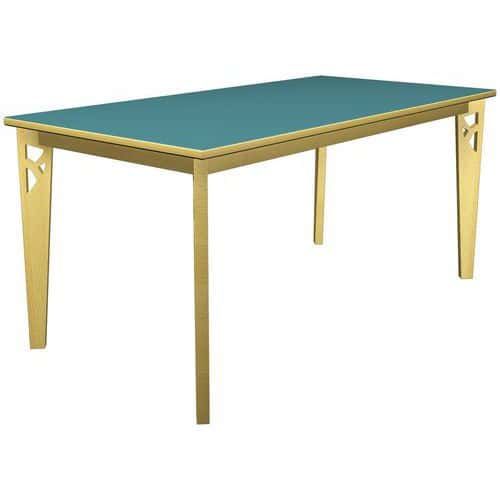 Table Iriss rectangulaire stratifié 4 pieds hêtre naturel Approche écoresponsable : oui Chants coloris : Hêtre Chants matériau : PVC Emballage recyclable : Oui 100 % Emballage recyclé : 100 % Environnement : Milieu restauration Forme : Rectangle Fréquence d'utilisation : Régulière Garantie client : 3 ans Hauteur : 76 cm Licence PEFC : 1031885 Livré monté : non Longueurs : 160 cm Montage : À monter Piétement coloris : Hêtre Piétement matériaux : Hêtre Plateau coloris : Vert foncé Plateau matériau : Stratifié Poids du produit : 36 kg Produit recyclable : Oui 100 % Produit recyclé : 58 % Profondeur : 80 cm Type de piétement : 4 pieds Usage : Collectivité Table Iriss 4 pieds avec plateau stratifié épaisseur 25 mm, chant PVC 2 mm. Piètement hêtre massif, verni naturel, épaisseur 27 mm. Assemblage équerre métallique. Verins plastique. Table Iriss rectangulaire stratifié, Longueur: 160 cm, Profondeur: 80 cm, Plateau matériau: Stratifié, Piétement coloris: Hêtre, Plateau coloris: Vert foncé, Hauteur: 76 cm, Type de piétement: 4 pieds, Chants coloris: Hêtre, Livré monté: non, Chants matériau: PVC, Montage: À monter, Fréquence d'utilisation: Régulière, Emballage recyclable: Oui 100 %, Emballage recyclé: 100 %, Produit recyclable: Oui 100 %, Produit recyclé: 58 %, Piétement matériau: Hêtre, Approche écoresponsable: oui, Poids: 36 kg, Usage: Collectivité, Forme: Rectangle, Licence PEFC: 1031885