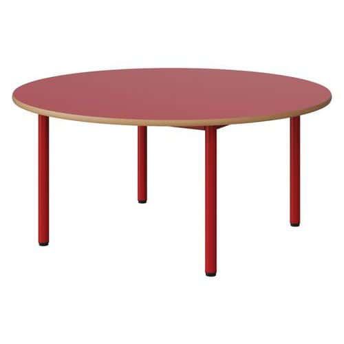 Table Malibu Ø 120cm stratifié chant alaisé Approche écoresponsable : oui Chants coloris : Rouge Chants matériau : Alaisé Emballage recyclé : 80 % Environnement : Intérieur Finition : Stratifié Forme : Rond Fréquence d'utilisation : Régulière Garantie client : 15 ans Hauteur : 53 cm Licence PEFC : 10311712 Livré monté : non Ø : 120 cm Piétement coloris : Rouge Piétement matériau : Acier Plateau coloris : Rouge Plateau épaisseur : 21 mm Plateau matériau : Aggloméré Poids : 25.3 kg Produit recyclé : 80 % Taille mobilier : T2 Type de piétement : 4 pieds Usage : Collectivité Table Malibu avec plateau aggloméré stratifié, épaisseur 21 mm, chant alaisé. Contrebalancement stratifié sous plateau blanc. Piètement et structure sous plateau tube acier. Soudure avec apport de matière. Embouts avec verins de réglage en polyéthylène noir non tachant, non marquant. Poudre époxy. Fabriqué en Nouvelle Aquitaine. Table Malibu Ø 120cm, Plateau matériau: Aggloméré, Piétement coloris: Rouge, Plateau coloris: Rouge, Hauteur: 53 cm, Type de piétement: 4 pieds, Ø: 120 cm, Finition: Stratifié, Chants coloris: Rouge, Livré monté: non, Chants matériau: Alaisé, Taille mobilier: T2, Fréquence d'utilisation: Régulière, Emballage recyclé: 80 %, Produit recyclé: 80 %, Piétement matériau: Acier, Approche écoresponsable: oui, Poids: 25.3 kg, Usage: Collectivité, Plateau épaisseur: 21 mm, Forme: Rond, Licence PEFC: 10311712