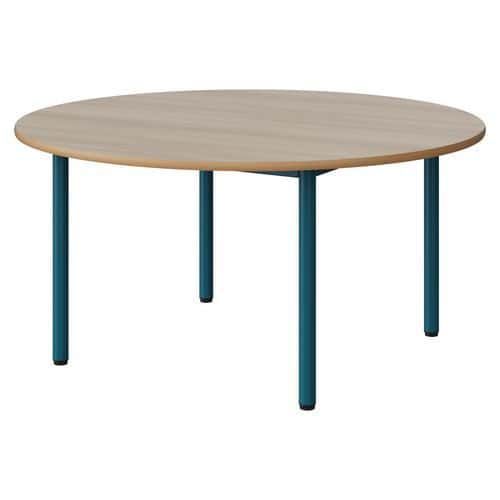 Table Malibu Ø 120cm stratifié chant alaisé Approche écoresponsable : oui Chants coloris : Acacia Chants matériau : Alaisé Emballage recyclé : 80 % Environnement : Intérieur Finition : Stratifié Forme : Rond Fréquence d'utilisation : Régulière Garantie client : 15 ans Hauteur : 59 cm Licence PEFC : 10311712 Livré monté : non Ø : 120 cm Piétement coloris : Bleu Piétement matériau : Acier Plateau coloris : Acacia Plateau épaisseur : 21 mm Plateau matériau : Aggloméré Poids : 25.7 kg Produit recyclé : 80 % Taille mobilier : T3 Type de piétement : 4 pieds Usage : Collectivité Table Malibu avec plateau aggloméré stratifié, épaisseur 21 mm, chant alaisé. Contrebalancement stratifié sous plateau blanc. Piètement et structure sous plateau tube acier. Soudure avec apport de matière. Embouts avec verins de réglage en polyéthylène noir non tachant, non marquant. Poudre époxy. Fabriqué en Nouvelle Aquitaine. Table Malibu Ø 120cm, Plateau matériau: Aggloméré, Piétement coloris: Bleu, Plateau coloris: Acacia, Hauteur: 59 cm, Type de piétement: 4 pieds, Ø: 120 cm, Finition: Stratifié, Chants coloris: Acacia, Livré monté: non, Chants matériau: Alaisé, Taille mobilier: T3, Fréquence d'utilisation: Régulière, Emballage recyclé: 80 %, Produit recyclé: 80 %, Piétement matériau: Acier, Approche écoresponsable: oui, Poids: 25.7 kg, Usage: Collectivité, Plateau épaisseur: 21 mm, Forme: Rond, Licence PEFC: 10311712