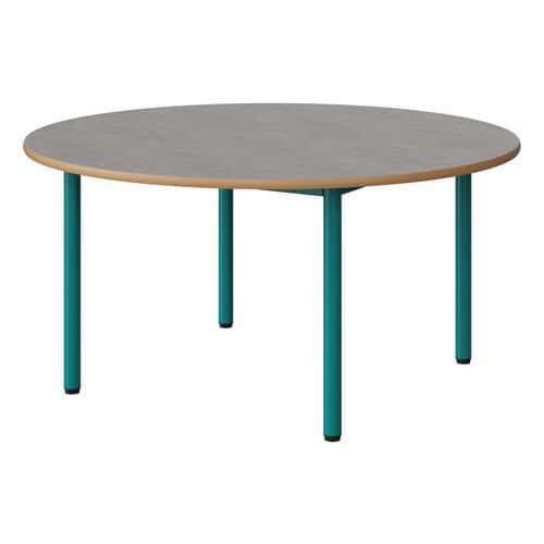 Table Malibu Ø 120cm stratifié chant alaisé Approche écoresponsable : oui Chants coloris : Gris clair Chants matériau : Alaisé Emballage recyclé : 80 % Environnement : Intérieur Finition : Stratifié Forme : Rond Fréquence d'utilisation : Régulière Garantie client : 15 ans Hauteur : 59 cm Licence PEFC : 10311712 Livré monté : non Ø : 120 cm Piétement coloris : Bleu Piétement matériau : Acier Plateau coloris : Gris clair Plateau épaisseur : 21 mm Plateau matériau : Aggloméré Poids : 25.7 kg Produit recyclé : 80 % Taille mobilier : T3 Type de piétement : 4 pieds Usage : Collectivité Table Malibu avec plateau aggloméré stratifié, épaisseur 21 mm, chant alaisé. Contrebalancement stratifié sous plateau blanc. Piètement et structure sous plateau tube acier. Soudure avec apport de matière. Embouts avec verins de réglage en polyéthylène noir non tachant, non marquant. Poudre époxy. Fabriqué en Nouvelle Aquitaine. Table Malibu Ø 120cm, Plateau matériau: Aggloméré, Piétement coloris: Bleu, Plateau coloris: Gris clair, Hauteur: 59 cm, Type de piétement: 4 pieds, Ø: 120 cm, Finition: Stratifié, Chants coloris: Gris clair, Livré monté: non, Chants matériau: Alaisé, Taille mobilier: T3, Fréquence d'utilisation: Régulière, Emballage recyclé: 80 %, Produit recyclé: 80 %, Piétement matériau: Acier, Approche écoresponsable: oui, Poids: 25.7 kg, Usage: Collectivité, Plateau épaisseur: 21 mm, Forme: Rond, Licence PEFC: 10311712