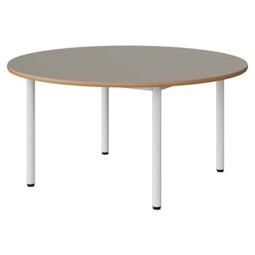 Table Malibu Ø 120cm stratifié chant alaisé Approche écoresponsable : oui Chants coloris : Gris Chants matériau : Alaisé Emballage recyclé : 80 % Environnement : Intérieur Finition : Stratifié Forme : Rond Fréquence d'utilisation : Régulière Garantie client : 15 ans Hauteur : 59 cm Licence PEFC : 10311712 Livré monté : non Ø : 120 cm Piétement coloris : Blanc Piétement matériau : Acier Plateau coloris : Gris Plateau épaisseur : 21 mm Plateau matériau : Aggloméré Poids : 25.7 kg Produit recyclé : 80 % Taille mobilier : T3 Type de piétement : 4 pieds Usage : Collectivité Table Malibu avec plateau aggloméré stratifié, épaisseur 21 mm, chant alaisé. Contrebalancement stratifié sous plateau blanc. Piètement et structure sous plateau tube acier. Soudure avec apport de matière. Embouts avec verins de réglage en polyéthylène noir non tachant, non marquant. Poudre époxy. Fabriqué en Nouvelle Aquitaine. Table Malibu Ø 120cm, Plateau matériau: Aggloméré, Piétement coloris: Blanc, Plateau coloris: Gris, Hauteur: 59 cm, Type de piétement: 4 pieds, Ø: 120 cm, Finition: Stratifié, Chants coloris: Gris, Livré monté: non, Chants matériau: Alaisé, Taille mobilier: T3, Fréquence d'utilisation: Régulière, Emballage recyclé: 80 %, Produit recyclé: 80 %, Piétement matériau: Acier, Approche écoresponsable: oui, Poids: 25.7 kg, Usage: Collectivité, Plateau épaisseur: 21 mm, Forme: Rond, Licence PEFC: 10311712
