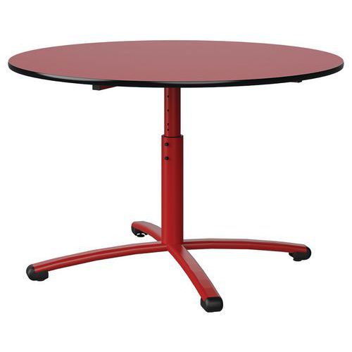 Table Malibu réglable stratifié antibruit 120 cm Manutan Expert Approche écoresponsable : oui Chants coloris : Noir Chants matériau : Surmoulé Diamètre Ø : 120 cm Emballage recyclé : 80 % Environnement : Intérieur Finitions : Stratifié antibruit Forme : Rond Fréquence d'utilisation : Régulière Garantie client : 15 ans Hauteur maxi : 76 cm Hauteur réglable mini : 59 cm Licence PEFC : 10311712 Livré monté : oui Longueurs : 120 cm Piétement coloris : Rouge Piétement matériaux : Acier Plateau coloris : Rouge Plateau épaisseur : 21 mm Plateau matériau : Aggloméré Poids du produit : 27.3 kg Produit recyclé : 80 % Profondeur : 120 cm Taille mobilier : T3T6 Type de piétement : Central Usage : Collectivité Table Malibu réglable, piètement central, plateau aggloméré stratifié, épaisseur 21 mm, antibruit, renforcé par du liège (3 mm) permettant la réduction du bruit de 9db. Chant surmoulé, contrebalancement stratifié sous plateau blanc. Piètement, structure sous plateau et montants tube acier. Réglage par vis de la T3 à T6. Soudure avec apport de matière. Table Malibu réglable stratifié antibruit, Longueurs: 120 cm, Profondeur: 120 cm, Plateau matériau: Aggloméré, Piétement coloris: Rouge, Plateau coloris: Rouge, Type de piétement: Central, Diamètre Ø: 120 cm, Finitions: Stratifié antibruit, Chants coloris: Noir, Livré monté: oui, Chants matériau: Surmoulé, Taille mobilier: T3T6, Fréquence d'utilisation: Régulière, Emballage recyclé: 80 %, Produit recyclé: 80 %, Piétement matériaux: Acier, Approche écoresponsable: oui, Poids du produit: 27.3 kg, Usage: Collectivité, Plateau épaisseur: 21 mm, Hauteur maxi: 76 cm, Hauteur réglable mini: 59 cm, Forme: Rond, Licence PEFC: 10311712