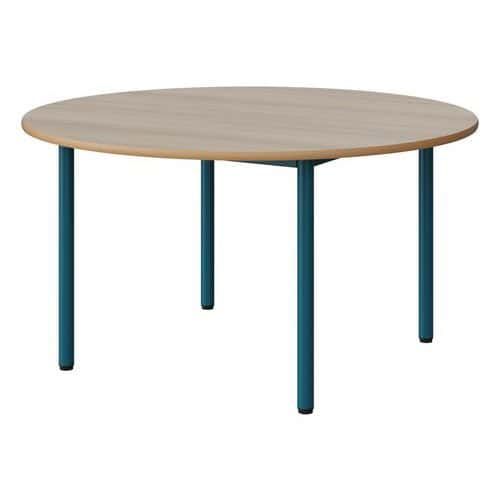 Table Malibu Ø 120cm stratifié chant alaisé Approche écoresponsable : oui Chants coloris : Acacia Chants matériau : Alaisé Emballage recyclé : 80 % Environnement : Intérieur Finition : Stratifié Forme : Rond Fréquence d'utilisation : Régulière Garantie client : 15 ans Hauteur : 64 cm Licence PEFC : 10311712 Livré monté : non Ø : 120 cm Piétement coloris : Bleu Piétement matériau : Acier Plateau coloris : Acacia Plateau épaisseur : 21 mm Plateau matériau : Aggloméré Poids : 26.1 kg Produit recyclé : 80 % Taille mobilier : T4 Type de piétement : 4 pieds Usage : Collectivité Table Malibu avec plateau aggloméré stratifié, épaisseur 21 mm, chant alaisé. Contrebalancement stratifié sous plateau blanc. Piètement et structure sous plateau tube acier. Soudure avec apport de matière. Embouts avec verins de réglage en polyéthylène noir non tachant, non marquant. Poudre époxy. Fabriqué en Nouvelle Aquitaine. Table Malibu Ø 120cm, Plateau matériau: Aggloméré, Piétement coloris: Bleu, Plateau coloris: Acacia, Hauteur: 64 cm, Type de piétement: 4 pieds, Ø: 120 cm, Finition: Stratifié, Chants coloris: Acacia, Livré monté: non, Chants matériau: Alaisé, Taille mobilier: T4, Fréquence d'utilisation: Régulière, Emballage recyclé: 80 %, Produit recyclé: 80 %, Piétement matériau: Acier, Approche écoresponsable: oui, Poids: 26.1 kg, Usage: Collectivité, Plateau épaisseur: 21 mm, Forme: Rond, Licence PEFC: 10311712