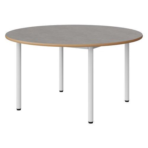 Table Malibu Ø 120cm stratifié chant alaisé Approche écoresponsable : oui Chants coloris : Gris clair Chants matériau : Alaisé Emballage recyclé : 80 % Environnement : Intérieur Finition : Stratifié Forme : Rond Fréquence d'utilisation : Régulière Garantie client : 15 ans Hauteur : 64 cm Licence PEFC : 10311712 Livré monté : non Ø : 120 cm Piétement coloris : Blanc Piétement matériau : Acier Plateau coloris : Gris clair Plateau épaisseur : 21 mm Plateau matériau : Aggloméré Poids : 26.1 kg Produit recyclé : 80 % Taille mobilier : T4 Type de piétement : 4 pieds Usage : Collectivité Table Malibu avec plateau aggloméré stratifié, épaisseur 21 mm, chant alaisé. Contrebalancement stratifié sous plateau blanc. Piètement et structure sous plateau tube acier. Soudure avec apport de matière. Embouts avec verins de réglage en polyéthylène noir non tachant, non marquant. Poudre époxy. Fabriqué en Nouvelle Aquitaine. Table Malibu Ø 120cm, Plateau matériau: Aggloméré, Piétement coloris: Blanc, Plateau coloris: Gris clair, Hauteur: 64 cm, Type de piétement: 4 pieds, Ø: 120 cm, Finition: Stratifié, Chants coloris: Gris clair, Livré monté: non, Chants matériau: Alaisé, Taille mobilier: T4, Fréquence d'utilisation: Régulière, Emballage recyclé: 80 %, Produit recyclé: 80 %, Piétement matériau: Acier, Approche écoresponsable: oui, Poids: 26.1 kg, Usage: Collectivité, Plateau épaisseur: 21 mm, Forme: Rond, Licence PEFC: 10311712