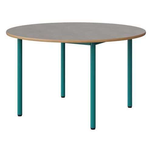 Table Malibu Ø 120cm stratifié chant alaisé Approche écoresponsable : oui Chants coloris : Gris clair Chants matériau : Alaisé Emballage recyclé : 80 % Environnement : Intérieur Finition : Stratifié Forme : Rond Fréquence d'utilisation : Régulière Garantie client : 15 ans Hauteur : 71 cm Licence PEFC : 10311712 Livré monté : non Ø : 120 cm Piétement coloris : Bleu Piétement matériau : Acier Plateau coloris : Gris clair Plateau épaisseur : 21 mm Plateau matériau : Aggloméré Poids : 26.6 kg Produit recyclé : 80 % Taille mobilier : T5 Type de piétement : 4 pieds Usage : Collectivité Table Malibu avec plateau aggloméré stratifié, épaisseur 21 mm, chant alaisé. Contrebalancement stratifié sous plateau blanc. Piètement et structure sous plateau tube acier. Soudure avec apport de matière. Embouts avec verins de réglage en polyéthylène noir non tachant, non marquant. Poudre époxy. Fabriqué en Nouvelle Aquitaine. Table Malibu Ø 120cm, Plateau matériau: Aggloméré, Piétement coloris: Bleu, Plateau coloris: Gris clair, Hauteur: 71 cm, Type de piétement: 4 pieds, Ø: 120 cm, Finition: Stratifié, Chants coloris: Gris clair, Livré monté: non, Chants matériau: Alaisé, Taille mobilier: T5, Fréquence d'utilisation: Régulière, Emballage recyclé: 80 %, Produit recyclé: 80 %, Piétement matériau: Acier, Approche écoresponsable: oui, Poids: 26.6 kg, Usage: Collectivité, Plateau épaisseur: 21 mm, Forme: Rond, Licence PEFC: 10311712