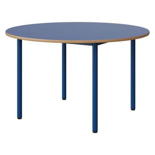 Table Malibu Ø 120cm stratifié chant alaisé Approche écoresponsable : oui Chants coloris : Bleu Chants matériau : Alaisé Emballage recyclé : 80 % Environnement : Intérieur Finition : Stratifié Forme : Rond Fréquence d'utilisation : Régulière Garantie client : 15 ans Hauteur : 71 cm Licence PEFC : 10311712 Livré monté : non Ø : 120 cm Piétement coloris : Bleu Piétement matériau : Acier Plateau coloris : Bleu Plateau épaisseur : 21 mm Plateau matériau : Aggloméré Poids : 26.6 kg Produit recyclé : 80 % Taille mobilier : T5 Type de piétement : 4 pieds Usage : Collectivité Table Malibu avec plateau aggloméré stratifié, épaisseur 21 mm, chant alaisé. Contrebalancement stratifié sous plateau blanc. Piètement et structure sous plateau tube acier. Soudure avec apport de matière. Embouts avec verins de réglage en polyéthylène noir non tachant, non marquant. Poudre époxy. Fabriqué en Nouvelle Aquitaine. Table Malibu Ø 120cm, Plateau matériau: Aggloméré, Piétement coloris: Bleu, Plateau coloris: Bleu, Hauteur: 71 cm, Type de piétement: 4 pieds, Ø: 120 cm, Finition: Stratifié, Chants coloris: Bleu, Livré monté: non, Chants matériau: Alaisé, Taille mobilier: T5, Fréquence d'utilisation: Régulière, Emballage recyclé: 80 %, Produit recyclé: 80 %, Piétement matériau: Acier, Approche écoresponsable: oui, Poids: 26.6 kg, Usage: Collectivité, Plateau épaisseur: 21 mm, Forme: Rond, Licence PEFC: 10311712