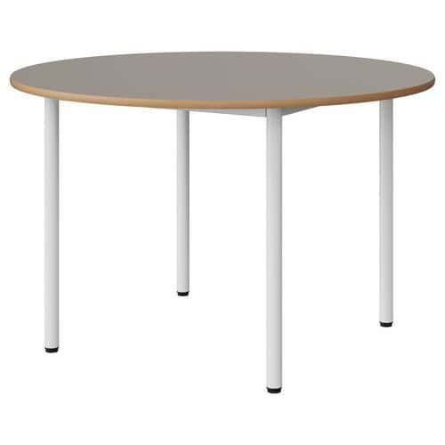 Table Malibu Ø 120cm stratifié chant alaisé Approche écoresponsable : oui Chants coloris : Gris Chants matériau : Alaisé Emballage recyclé : 80 % Environnement : Intérieur Finition : Stratifié Forme : Rond Fréquence d'utilisation : Régulière Garantie client : 15 ans Hauteur : 76 cm Licence PEFC : 10311712 Livré monté : non Ø : 120 cm Piétement coloris : Blanc Piétement matériau : Acier Plateau coloris : Gris Plateau épaisseur : 21 mm Plateau matériau : Aggloméré Poids : 27 kg Produit recyclé : 80 % Taille mobilier : T6 Type de piétement : 4 pieds Usage : Collectivité Table Malibu avec plateau aggloméré stratifié, épaisseur 21 mm, chant alaisé. Contrebalancement stratifié sous plateau blanc. Piètement et structure sous plateau tube acier. Soudure avec apport de matière. Embouts avec verins de réglage en polyéthylène noir non tachant, non marquant. Poudre époxy. Fabriqué en Nouvelle Aquitaine. Table Malibu Ø 120cm, Plateau matériau: Aggloméré, Piétement coloris: Blanc, Plateau coloris: Gris, Hauteur: 76 cm, Type de piétement: 4 pieds, Ø: 120 cm, Finition: Stratifié, Chants coloris: Gris, Livré monté: non, Chants matériau: Alaisé, Taille mobilier: T6, Fréquence d'utilisation: Régulière, Emballage recyclé: 80 %, Produit recyclé: 80 %, Piétement matériau: Acier, Approche écoresponsable: oui, Poids: 27 kg, Usage: Collectivité, Plateau épaisseur: 21 mm, Forme: Rond, Licence PEFC: 10311712