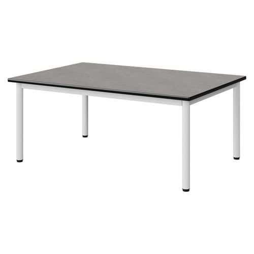 Table Malibu 120 x 80 cm stratifié antibruit chant surmoulé Approche écoresponsable : oui Chants coloris : Noir Chants matériau : Surmoulé Emballage recyclé : 80 % Environnement : Intérieur Finition : Stratifié antibruit Forme : Rectangle Fréquence d'utilisation : Régulière Garantie client : 15 ans Hauteur : 46 cm Licence PEFC : 10311712 Livré monté : non Longueur : 120 cm Piétement coloris : Blanc Piétement matériau : Acier Plateau coloris : Gris clair Plateau épaisseur : 21 mm Plateau matériau : Aggloméré Poids : 22.8 kg Produit recyclé : 80 % Profondeur : 80 cm Taille mobilier : T1 Type de piétement : 4 pieds Usage : Collectivité Table Malibu plateau aggloméré stratifié, épaisseur 21 mm, antibruit, renforcé par du liège (3 mm) permettant la réduction du bruit de 9db. Chant surmoulé. Contrebalancement stratifié sous plateau blanc. Piètement et structure sous plateau tube acier. Soudure avec apport de matière. Embouts avec verins de réglage en polyéthylène noir non tachant, non marquant. Poudre époxy. Fabriqué en Nouvelle Aquitaine. Table Malibu 120 x 80 cm, Longueur: 120 cm, Profondeur: 80 cm, Plateau matériau: Aggloméré, Piétement coloris: Blanc, Plateau coloris: Gris clair, Hauteur: 46 cm, Type de piétement: 4 pieds, Finition: Stratifié antibruit, Chants coloris: Noir, Livré monté: non, Chants matériau: Surmoulé, Taille mobilier: T1, Fréquence d'utilisation: Régulière, Emballage recyclé: 80 %, Produit recyclé: 80 %, Piétement matériau: Acier, Approche écoresponsable: oui, Poids: 22.8 kg, Usage: Collectivité, Plateau épaisseur: 21 mm, Forme: Rectangle, Licence PEFC: 10311712