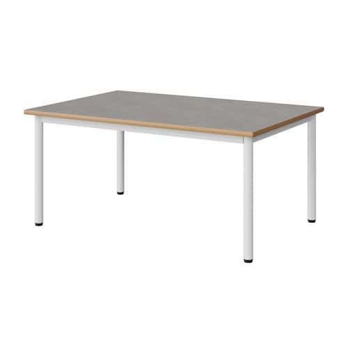 Table Malibu 120 x 80 cm stratifié chant alaisé Approche écoresponsable : oui Chants coloris : Gris clair Chants matériau : Alaisé Emballage recyclé : 80 % Environnement : Intérieur Finition : Stratifié Forme : Rectangle Fréquence d'utilisation : Régulière Garantie client : 15 ans Hauteur : 53 cm Licence PEFC : 10311712 Livré monté : non Longueur : 120 cm Piétement coloris : Blanc Piétement matériau : Acier Plateau coloris : Gris clair Plateau épaisseur : 21 mm Plateau matériau : Aggloméré Poids : 23.7 kg Produit recyclé : 80 % Profondeur : 80 cm Taille mobilier : T2 Type de piétement : 4 pieds Usage : Collectivité Table Malibu avec plateau aggloméré stratifié, épaisseur 21 mm, chant alaisé. Contrebalancement stratifié sous plateau blanc. Piètement et structure sous plateau tube acier. Soudure avec apport de matière. Embouts avec verins de réglage en polyéthylène noir non tachant, non marquant. Poudre époxy. Fabriqué en Nouvelle Aquitaine. Table Malibu 120 x 80 cm, Longueur: 120 cm, Profondeur: 80 cm, Plateau matériau: Aggloméré, Piétement coloris: Blanc, Plateau coloris: Gris clair, Hauteur: 53 cm, Type de piétement: 4 pieds, Finition: Stratifié, Chants coloris: Gris clair, Livré monté: non, Chants matériau: Alaisé, Taille mobilier: T2, Fréquence d'utilisation: Régulière, Emballage recyclé: 80 %, Produit recyclé: 80 %, Piétement matériau: Acier, Approche écoresponsable: oui, Poids: 23.7 kg, Usage: Collectivité, Plateau épaisseur: 21 mm, Forme: Rectangle, Licence PEFC: 10311712