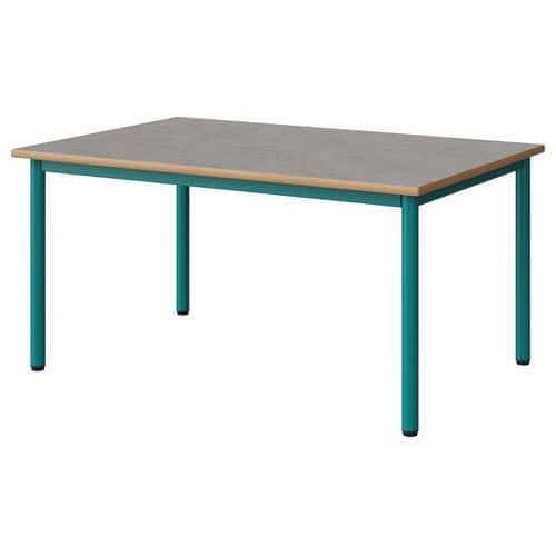 Table Malibu 120 x 80 cm stratifié chant alaisé Approche écoresponsable : oui Chants coloris : Gris clair Chants matériau : Alaisé Emballage recyclé : 80 % Environnement : Intérieur Finition : Stratifié Forme : Rectangle Fréquence d'utilisation : Régulière Garantie client : 15 ans Hauteur : 59 cm Licence PEFC : 10311712 Livré monté : non Longueur : 120 cm Piétement coloris : Bleu Piétement matériau : Acier Plateau coloris : Gris clair Plateau épaisseur : 21 mm Plateau matériau : Aggloméré Poids : 24.1 kg Produit recyclé : 80 % Profondeur : 80 cm Taille mobilier : T3 Type de piétement : 4 pieds Usage : Collectivité Table Malibu avec plateau aggloméré stratifié, épaisseur 21 mm, chant alaisé. Contrebalancement stratifié sous plateau blanc. Piètement et structure sous plateau tube acier. Soudure avec apport de matière. Embouts avec verins de réglage en polyéthylène noir non tachant, non marquant. Poudre époxy. Fabriqué en Nouvelle Aquitaine. Table Malibu 120 x 80 cm, Longueur: 120 cm, Profondeur: 80 cm, Plateau matériau: Aggloméré, Piétement coloris: Bleu, Plateau coloris: Gris clair, Hauteur: 59 cm, Type de piétement: 4 pieds, Finition: Stratifié, Chants coloris: Gris clair, Livré monté: non, Chants matériau: Alaisé, Taille mobilier: T3, Fréquence d'utilisation: Régulière, Emballage recyclé: 80 %, Produit recyclé: 80 %, Piétement matériau: Acier, Approche écoresponsable: oui, Poids: 24.1 kg, Usage: Collectivité, Plateau épaisseur: 21 mm, Forme: Rectangle, Licence PEFC: 10311712