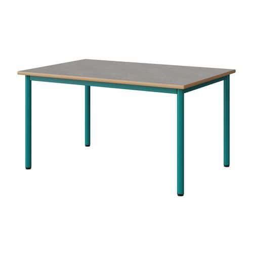 Table Malibu 120 x 80 cm stratifié chant alaisé Approche écoresponsable : oui Chants coloris : Gris clair Chants matériau : Alaisé Emballage recyclé : 80 % Environnement : Intérieur Finition : Stratifié Forme : Rectangle Fréquence d'utilisation : Régulière Garantie client : 15 ans Hauteur : 64 cm Licence PEFC : 10311712 Livré monté : non Longueur : 120 cm Piétement coloris : Bleu Piétement matériau : Acier Plateau coloris : Gris clair Plateau épaisseur : 21 mm Plateau matériau : Aggloméré Poids : 24.5 kg Produit recyclé : 80 % Profondeur : 80 cm Taille mobilier : T4 Type de piétement : 4 pieds Usage : Collectivité Table Malibu avec plateau aggloméré stratifié, épaisseur 21 mm, chant alaisé. Contrebalancement stratifié sous plateau blanc. Piètement et structure sous plateau tube acier. Soudure avec apport de matière. Embouts avec verins de réglage en polyéthylène noir non tachant, non marquant. Poudre époxy. Fabriqué en Nouvelle Aquitaine. Table Malibu 120 x 80 cm, Longueur: 120 cm, Profondeur: 80 cm, Plateau matériau: Aggloméré, Piétement coloris: Bleu, Plateau coloris: Gris clair, Hauteur: 64 cm, Type de piétement: 4 pieds, Finition: Stratifié, Chants coloris: Gris clair, Livré monté: non, Chants matériau: Alaisé, Taille mobilier: T4, Fréquence d'utilisation: Régulière, Emballage recyclé: 80 %, Produit recyclé: 80 %, Piétement matériau: Acier, Approche écoresponsable: oui, Poids: 24.5 kg, Usage: Collectivité, Plateau épaisseur: 21 mm, Forme: Rectangle, Licence PEFC: 10311712