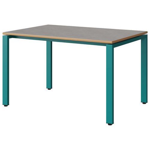 Table Malibu 120 x 80 cm pieds soudés stratifié chant alaisé Approche écoresponsable : oui Chants coloris : Gris clair Chants matériau : Alaisé Emballage recyclé : 80 % Environnement : Intérieur Finition : Stratifié Forme : Rectangle Fréquence d'utilisation : Régulière Garantie client : 15 ans Hauteur : 71 cm Licence PEFC : 10311712 Livré monté : oui Longueur : 120 cm Piétement coloris : Bleu Piétement matériau : Acier Plateau coloris : Gris clair Plateau épaisseur : 21 mm Plateau matériau : Aggloméré Poids : 21.9 kg Produit recyclé : 80 % Profondeur : 80 cm Taille mobilier : T5 Type de piétement : 4 pieds Usage : Collectivité Table Malibu avec plateau aggloméré stratifié, épaisseur 21 mm, chant alaisé. Contrebalancement stratifié sous plateau blanc. Piètement et renforts sous plateau tube acier. Structure monobloc soudée avec apport de matière. Embouts avec verins de réglage en polyéthylène noir non tachant, non marquant. Poudre époxy. Fabriqué en Nouvelle Aquitaine. Table Malibu 120 x 80 cm pieds soudés, Longueur: 120 cm, Profondeur: 80 cm, Plateau matériau: Aggloméré, Piétement coloris: Bleu, Plateau coloris: Gris clair, Hauteur: 71 cm, Type de piétement: 4 pieds, Finition: Stratifié, Chants coloris: Gris clair, Livré monté: oui, Chants matériau: Alaisé, Taille mobilier: T5, Fréquence d'utilisation: Régulière, Emballage recyclé: 80 %, Produit recyclé: 80 %, Piétement matériau: Acier, Approche écoresponsable: oui, Poids: 21.9 kg, Usage: Collectivité, Plateau épaisseur: 21 mm, Forme: Rectangle, Licence PEFC: 10311712