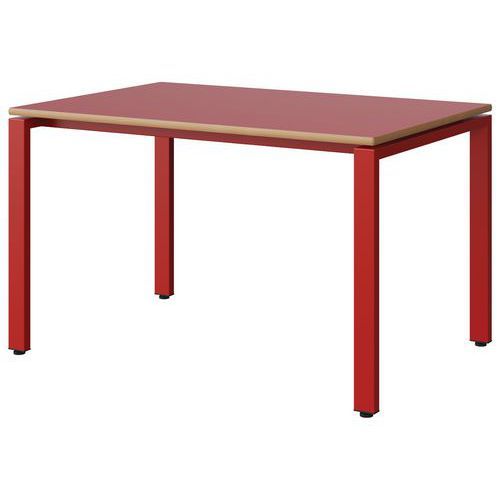 Table Malibu 120 x 80 cm pieds soudés stratifié chant alaisé Approche écoresponsable : oui Chants coloris : Rouge Chants matériau : Alaisé Emballage recyclé : 80 % Environnement : Intérieur Finition : Stratifié Forme : Rectangle Fréquence d'utilisation : Régulière Garantie client : 15 ans Hauteur : 71 cm Licence PEFC : 10311712 Livré monté : oui Longueur : 120 cm Piétement coloris : Rouge Piétement matériau : Acier Plateau coloris : Rouge Plateau épaisseur : 21 mm Plateau matériau : Aggloméré Poids : 21.9 kg Produit recyclé : 80 % Profondeur : 80 cm Taille mobilier : T5 Type de piétement : 4 pieds Usage : Collectivité Table Malibu avec plateau aggloméré stratifié, épaisseur 21 mm, chant alaisé. Contrebalancement stratifié sous plateau blanc. Piètement et renforts sous plateau tube acier. Structure monobloc soudée avec apport de matière. Embouts avec verins de réglage en polyéthylène noir non tachant, non marquant. Poudre époxy. Fabriqué en Nouvelle Aquitaine. Table Malibu 120 x 80 cm pieds soudés, Longueur: 120 cm, Profondeur: 80 cm, Plateau matériau: Aggloméré, Piétement coloris: Rouge, Plateau coloris: Rouge, Hauteur: 71 cm, Type de piétement: 4 pieds, Finition: Stratifié, Chants coloris: Rouge, Livré monté: oui, Chants matériau: Alaisé, Taille mobilier: T5, Fréquence d'utilisation: Régulière, Emballage recyclé: 80 %, Produit recyclé: 80 %, Piétement matériau: Acier, Approche écoresponsable: oui, Poids: 21.9 kg, Usage: Collectivité, Plateau épaisseur: 21 mm, Forme: Rectangle, Licence PEFC: 10311712