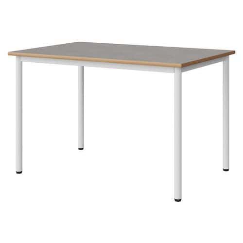 Table Malibu 120 x 80 cm stratifié chant alaisé Approche écoresponsable : oui Chants coloris : Gris clair Chants matériau : Alaisé Emballage recyclé : 80 % Environnement : Intérieur Finition : Stratifié Forme : Rectangle Fréquence d'utilisation : Régulière Garantie client : 15 ans Hauteur : 76 cm Licence PEFC : 10311712 Livré monté : non Longueur : 120 cm Piétement coloris : Blanc Piétement matériau : Acier Plateau coloris : Gris clair Plateau épaisseur : 21 mm Plateau matériau : Aggloméré Poids : 25.4 kg Produit recyclé : 80 % Profondeur : 80 cm Taille mobilier : T6 Type de piétement : 4 pieds Usage : Collectivité Table Malibu avec plateau aggloméré stratifié, épaisseur 21 mm, chant alaisé. Contrebalancement stratifié sous plateau blanc. Piètement et structure sous plateau tube acier. Soudure avec apport de matière. Embouts avec verins de réglage en polyéthylène noir non tachant, non marquant. Poudre époxy. Fabriqué en Nouvelle Aquitaine. Table Malibu 120 x 80 cm, Longueur: 120 cm, Profondeur: 80 cm, Plateau matériau: Aggloméré, Piétement coloris: Blanc, Plateau coloris: Gris clair, Hauteur: 76 cm, Type de piétement: 4 pieds, Finition: Stratifié, Chants coloris: Gris clair, Livré monté: non, Chants matériau: Alaisé, Taille mobilier: T6, Fréquence d'utilisation: Régulière, Emballage recyclé: 80 %, Produit recyclé: 80 %, Piétement matériau: Acier, Approche écoresponsable: oui, Poids: 25.4 kg, Usage: Collectivité, Plateau épaisseur: 21 mm, Forme: Rectangle, Licence PEFC: 10311712
