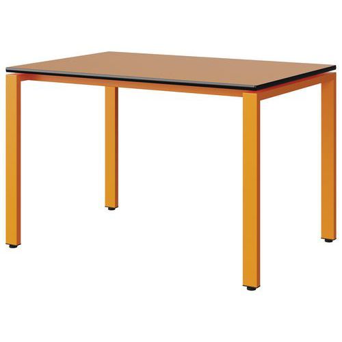 Table Malibu 120x80 cm 4P soudés stratifié antibruit chant surmoulé Approche écoresponsable : oui Chants coloris : Noir Chants matériau : Surmoulé Emballage recyclé : 80 % Environnement : Intérieur Finition : Stratifié antibruit Forme : Rectangle Fréquence d'utilisation : Régulière Garantie client : 15 ans Hauteur : 76 cm Licence PEFC : 10311712 Livré monté : oui Longueur : 120 cm Piétement coloris : Orange Piétement matériau : Acier Plateau coloris : Orange Plateau épaisseur : 21 mm Plateau matériau : Aggloméré Poids : 21.7 kg Produit recyclé : 80 % Profondeur : 80 cm Taille mobilier : T6 Type de piétement : 4 pieds Usage : Collectivité Table Malibu plateau aggloméré stratifié, épaisseur 21 mm, antibruit, renforcé par du liège (3 mm) permettant la réduction du bruit de 9db. Chant surmoulé. Contrebalancement stratifié sous plateau blanc. Piètement et renforts sous plateau tube acier. Structure monobloc soudée avec apport de matière. Embouts avec verins de réglage en polyéthylène noir non tachant, non marquant. Poudre époxy. Fabriqué en Nouvelle Aquitaine. Table Malibu 120x80 cm 4P soudés, Longueur: 120 cm, Profondeur: 80 cm, Plateau matériau: Aggloméré, Piétement coloris: Orange, Plateau coloris: Orange, Piétement matériau: Acier, Chants matériau: Surmoulé, Hauteur: 76 cm, Type de piétement: 4 pieds, Finition: Stratifié antibruit, Chants coloris: Noir, Livré monté: oui, Taille mobilier: T6, Fréquence d'utilisation: Régulière, Emballage recyclé: 80 %, Produit recyclé: 80 %, Approche écoresponsable: oui, Poids: 21.7 kg, Usage: Collectivité, Plateau épaisseur: 21 mm, Forme: Rectangle, Licence PEFC: 10311712