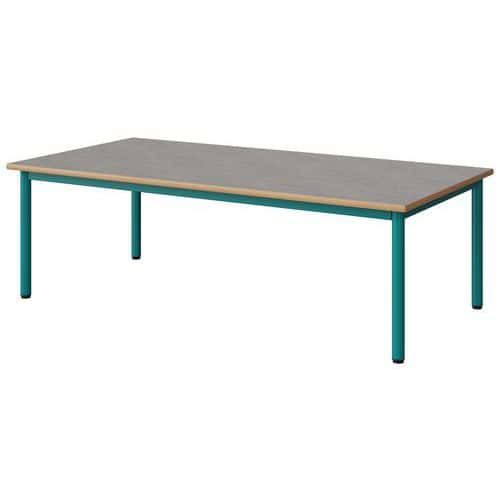 Table Malibu 160 x 80 cm stratifié chant alaisé Approche écoresponsable : oui Chants coloris : Gris clair Chants matériau : Alaisé Emballage recyclé : 80 % Environnement : Intérieur Finition : Stratifié Forme : Rectangle Fréquence d'utilisation : Régulière Garantie client : 15 ans Hauteur : 46 cm Licence PEFC : 10311712 Livré monté : non Longueur : 160 cm Piétement coloris : Bleu Piétement matériau : Acier Plateau coloris : Gris clair Plateau épaisseur : 21 mm Plateau matériau : Aggloméré Poids : 29.1 kg Produit recyclé : 80 % Profondeur : 80 cm Taille mobilier : T1 Type de piétement : 4 pieds Usage : Collectivité Table Malibu avec plateau aggloméré stratifié, épaisseur 21 mm, chant alaisé. Contrebalancement stratifié sous plateau blanc. Piètement et structure sous plateau tube acier. Soudure avec apport de matière. Embouts avec verins de réglage en polyéthylène noir non tachant, non marquant. Poudre époxy. Fabriqué en Nouvelle Aquitaine. Table Malibu 160 x 80 cm, Longueur: 160 cm, Profondeur: 80 cm, Plateau matériau: Aggloméré, Piétement coloris: Bleu, Plateau coloris: Gris clair, Hauteur: 46 cm, Type de piétement: 4 pieds, Finition: Stratifié, Chants coloris: Gris clair, Livré monté: non, Chants matériau: Alaisé, Taille mobilier: T1, Fréquence d'utilisation: Régulière, Emballage recyclé: 80 %, Produit recyclé: 80 %, Piétement matériau: Acier, Approche écoresponsable: oui, Poids: 29.1 kg, Usage: Collectivité, Plateau épaisseur: 21 mm, Forme: Rectangle, Licence PEFC: 10311712