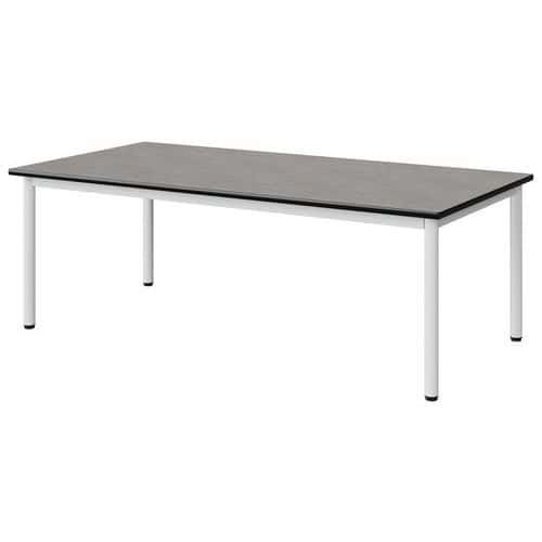 Table Malibu 160 x 80 cm stratifié chant surmoulé Approche écoresponsable : oui Chants coloris : Noir Chants matériau : Surmoulé Emballage recyclé : 80 % Environnement : Intérieur Finition : Stratifié Forme : Rectangle Fréquence d'utilisation : Régulière Garantie client : 15 ans Hauteur : 53 cm Licence PEFC : 10311712 Livré monté : non Longueur : 160 cm Piétement coloris : Blanc Piétement matériau : Acier Plateau coloris : Gris clair Plateau épaisseur : 21 mm Plateau matériau : Aggloméré Poids : 30 kg Produit recyclé : 80 % Profondeur : 80 cm Taille mobilier : T2 Type de piétement : 4 pieds Usage : Collectivité Table Malibu avec plateau aggloméré stratifié, épaisseur 21 mm, chant surmoulé. Contrebalancement stratifié sous plateau blanc. Piètement et structure sous plateau tube acier. Soudure avec apport de matière. Embouts avec verins de réglage en polyéthylène noir non tachant, non marquant. Poudre époxy. Fabriqué en Nouvelle Aquitaine. Table Malibu 160 x 80 cm, Longueur: 160 cm, Profondeur: 80 cm, Plateau matériau: Aggloméré, Piétement coloris: Blanc, Plateau coloris: Gris clair, Hauteur: 53 cm, Type de piétement: 4 pieds, Finition: Stratifié, Chants coloris: Noir, Livré monté: non, Chants matériau: Surmoulé, Taille mobilier: T2, Fréquence d'utilisation: Régulière, Emballage recyclé: 80 %, Produit recyclé: 80 %, Piétement matériau: Acier, Approche écoresponsable: oui, Poids: 30 kg, Usage: Collectivité, Plateau épaisseur: 21 mm, Forme: Rectangle, Licence PEFC: 10311712
