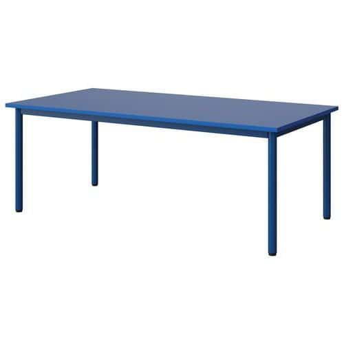 Table Malibu 160 x 80 cm stratifié chant ABS Approche écoresponsable : oui Chants coloris : Bleu Chants matériau : ABS Emballage recyclé : 80 % Environnement : Intérieur Finition : Stratifié Forme : Rectangle Fréquence d'utilisation : Régulière Garantie client : 15 ans Hauteur : 59 cm Licence PEFC : 10311712 Livré monté : non Longueur : 160 cm Piétement coloris : Bleu Piétement matériau : Acier Plateau coloris : Bleu Plateau épaisseur : 21 mm Plateau matériau : Aggloméré Poids : 29.7 kg Produit recyclé : 80 % Profondeur : 80 cm Taille mobilier : T3 Type de piétement : 4 pieds Usage : Collectivité Table Malibu avec plateau aggloméré stratifié, épaisseur 21 mm, chant ABS. Contrebalancement stratifié sous plateau blanc. Piètement et structure sous plateau tube acier. Soudure avec apport de matière. Embouts avec verins de réglage en polyéthylène noir non tachant, non marquant. Poudre époxy. Fabriqué en Nouvelle Aquitaine. Table Malibu 160 x 80 cm, Longueur: 160 cm, Profondeur: 80 cm, Plateau matériau: Aggloméré, Piétement coloris: Bleu, Plateau coloris: Bleu, Hauteur: 59 cm, Type de piétement: 4 pieds, Finition: Stratifié, Chants coloris: Bleu, Livré monté: non, Chants matériau: ABS, Taille mobilier: T3, Fréquence d'utilisation: Régulière, Emballage recyclé: 80 %, Produit recyclé: 80 %, Piétement matériau: Acier, Approche écoresponsable: oui, Poids: 29.7 kg, Usage: Collectivité, Plateau épaisseur: 21 mm, Forme: Rectangle, Licence PEFC: 10311712