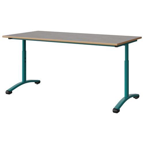 Table Malibu 160 x 80 cm réglable T3/T6 DL stratifié alaisé Approche écoresponsable : oui Chants coloris : Gris clair Chants matériau : Alaisé Dégagement latéral : oui Emballage recyclé : 80 % Environnement : Intérieur Finition : Stratifié Forme : Rectangle Fréquence d'utilisation : Régulière Garantie client : 15 ans Hauteur maxi : 76 cm Hauteur réglable mini : 59 cm Licence PEFC : 10311712 Livré monté : oui Longueur : 160 cm Piétement coloris : Bleu Piétement matériau : Acier Plateau coloris : Gris clair Plateau épaisseur : 21 mm Plateau matériau : Aggloméré Poids : 34.6 kg Produit recyclé : 80 % Profondeur : 80 cm Taille mobilier : T3T6 Type de piétement : 2 pieds Usage : Collectivité Table Malibu réglable à dégagement latéral avec plateau aggloméré stratifié, épaisseur 21 mm, chant alaisé. Contrebalancement stratifié sous plateau blanc. Piètement et structure sous plateau tube acier. Réglage par vis de la T3 à T6. Soudure avec apport de matière. Embouts avec verins de réglage en polyéthylène noir non tachant, non marquant. Poudre époxy. Fabriqué en Nouvelle Aquitaine. Table Malibu 160 x 80 cm réglable T3/T6 DL, Longueur: 160 cm, Profondeur: 80 cm, Plateau matériau: Aggloméré, Piétement coloris: Bleu, Plateau coloris: Gris clair, Type de piétement: 2 pieds, Finition: Stratifié, Chants coloris: Gris clair, Dégagement latéral: oui, Livré monté: oui, Chants matériau: Alaisé, Taille mobilier: T3T6, Fréquence d'utilisation: Régulière, Emballage recyclé: 80 %, Produit recyclé: 80 %, Piétement matériau: Acier, Approche écoresponsable: oui, Poids: 34.6 kg, Usage: Collectivité, Plateau épaisseur: 21 mm, Hauteur maxi: 76 cm, Hauteur réglable mini: 59 cm, Forme: Rectangle, Licence PEFC: 10311712